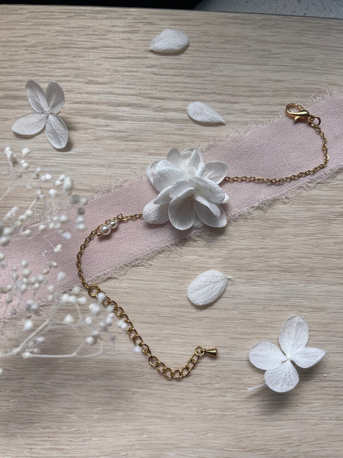 Collier Chaîne Fine & Perle – Hortensia stabilisé -