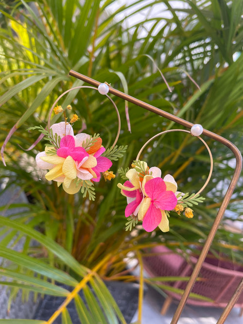 Collier Double Chaîne & Perles – Hortensias stabilisé -