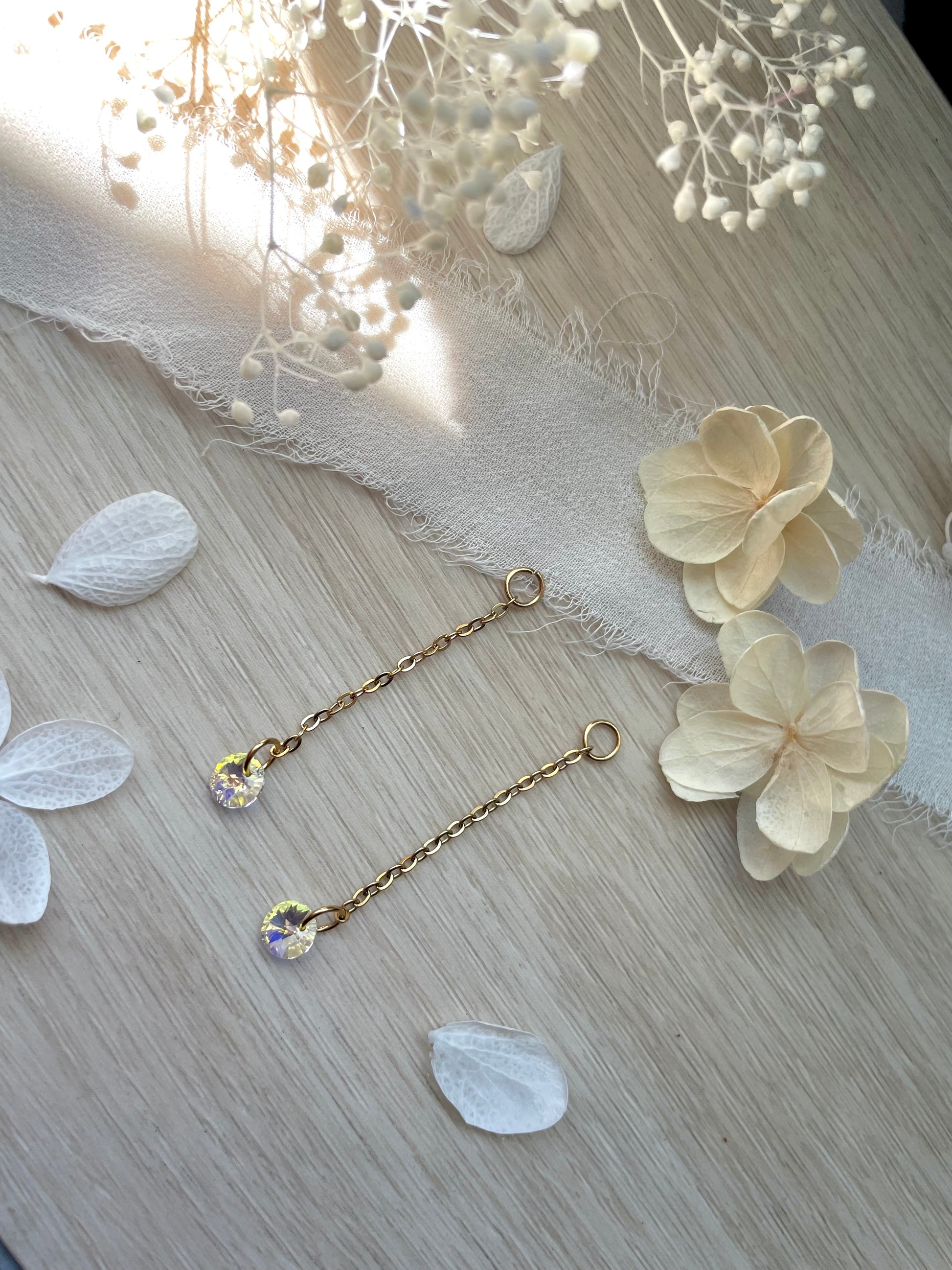 Les boucles Calypso sont une ode à la délicatesse. Chaque pièce est composée d’une fleur stabilisée, évoquant la douceur des pétales , suspendue à une fine chaîne dorée. Un cristal scintillant à reflets irisés vient sublimer l’ensemble avec élégance et subtilité. Parfaites pour une tenue romantique ou une occasion spéciale.