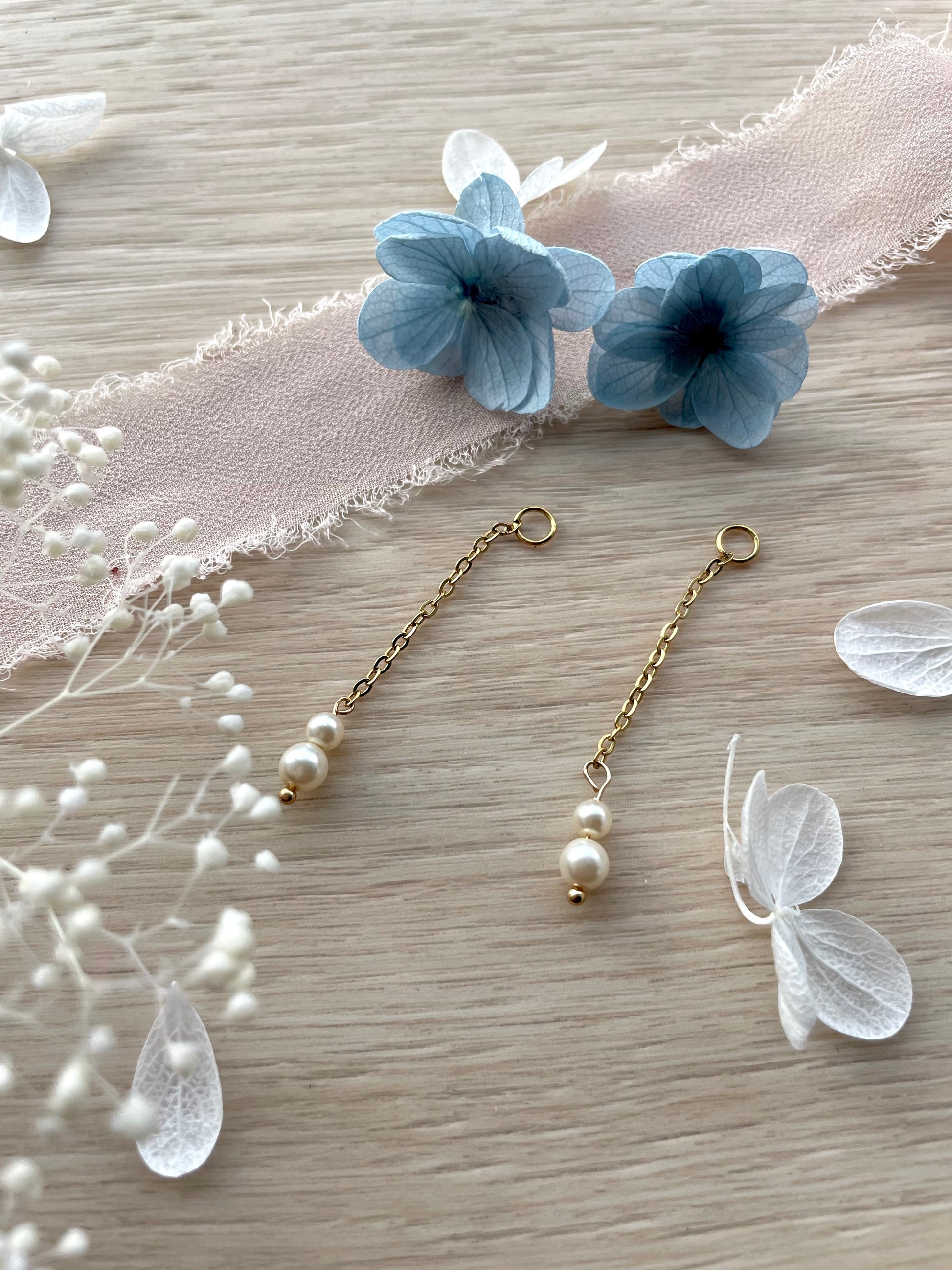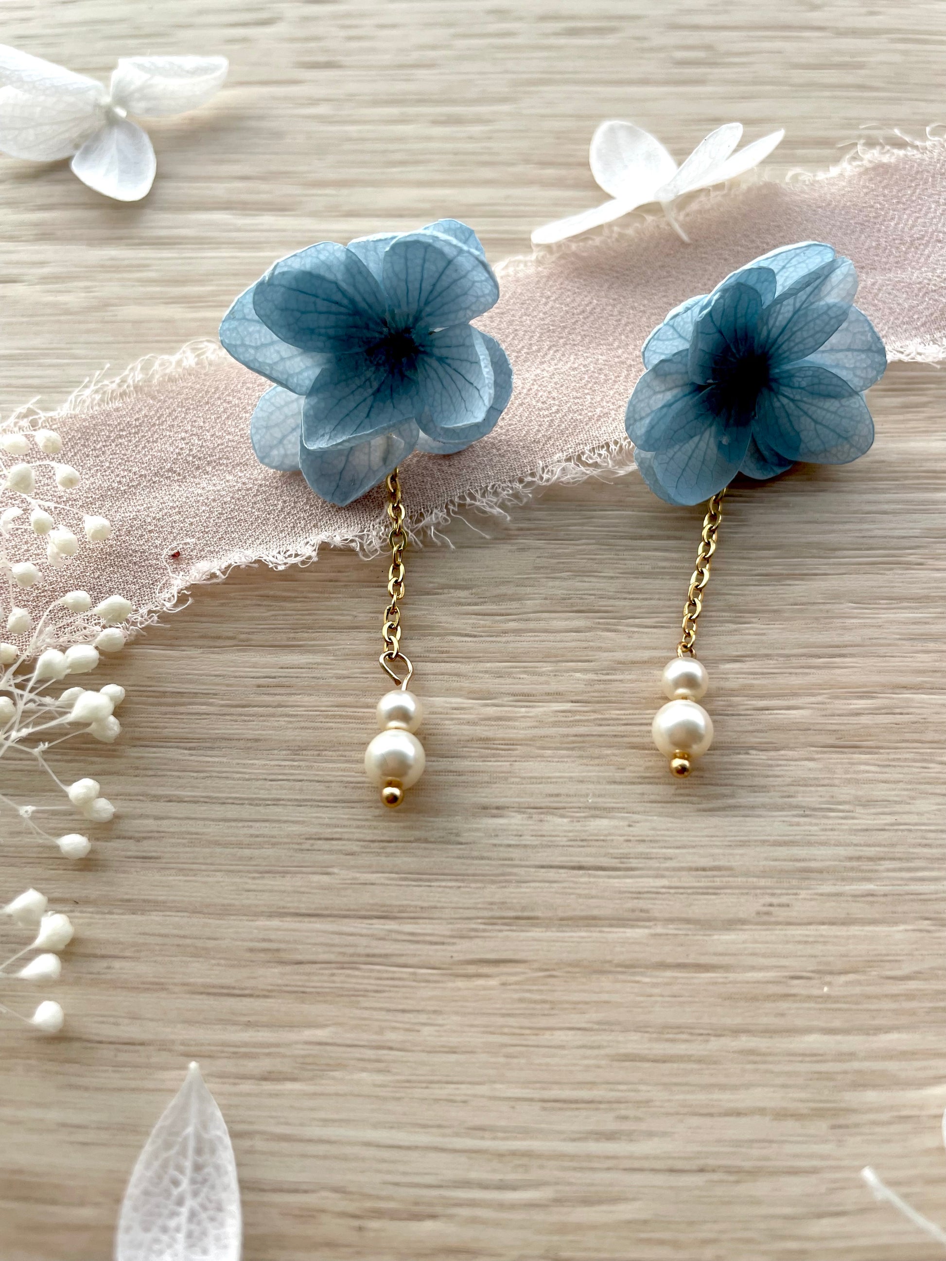- Design : Boucles pendantes avec fleur stabilisée et perles suspendues