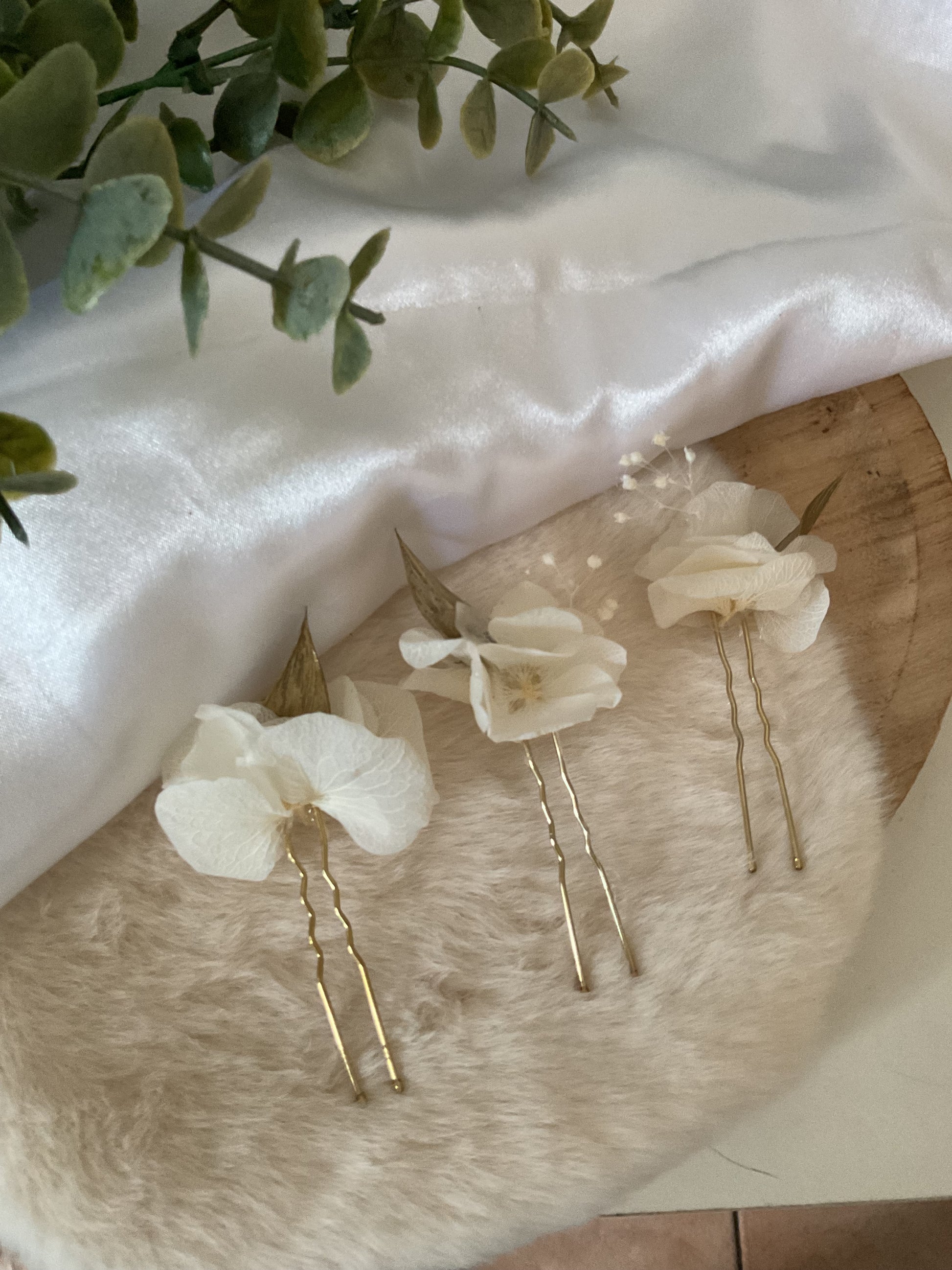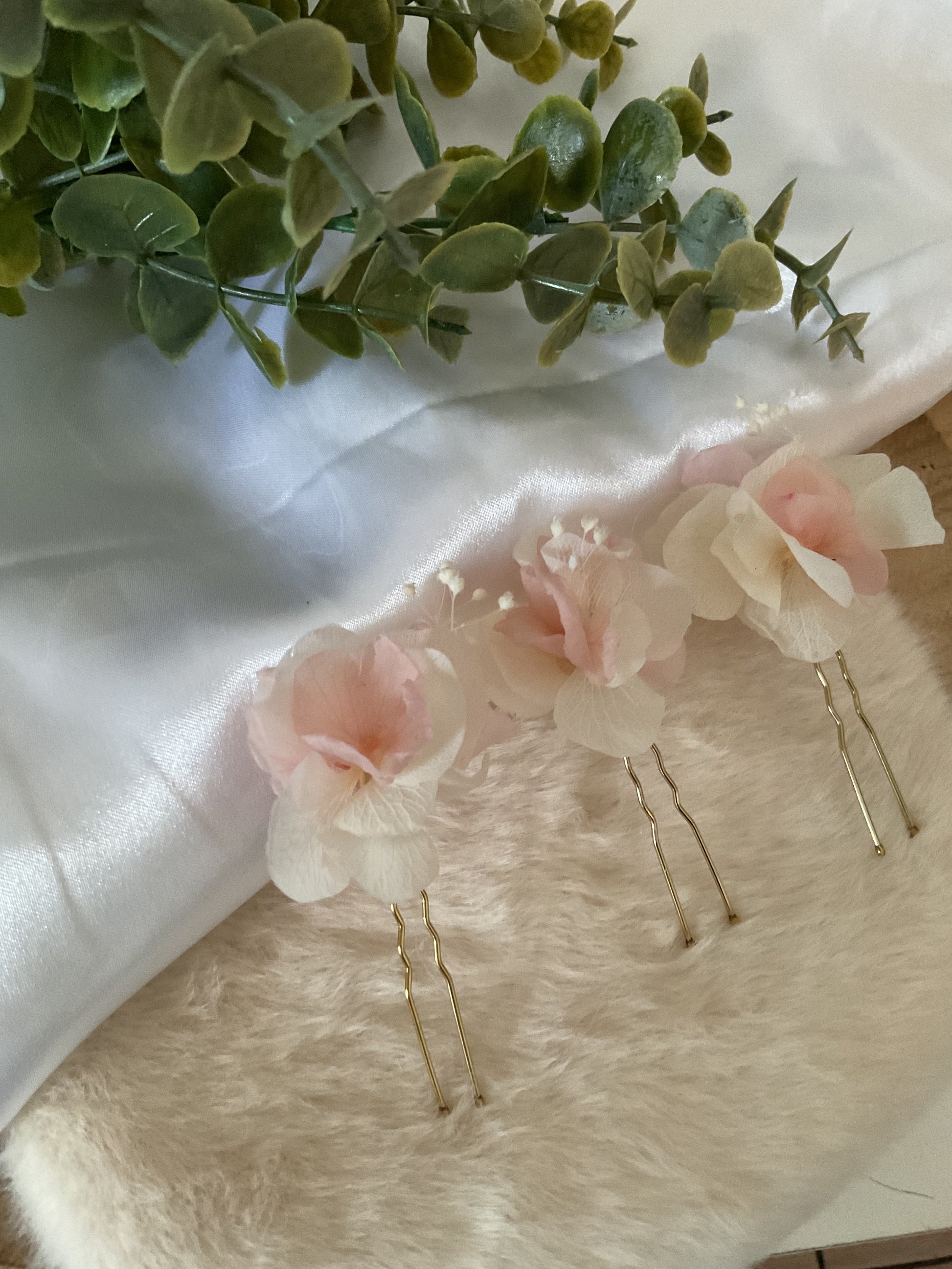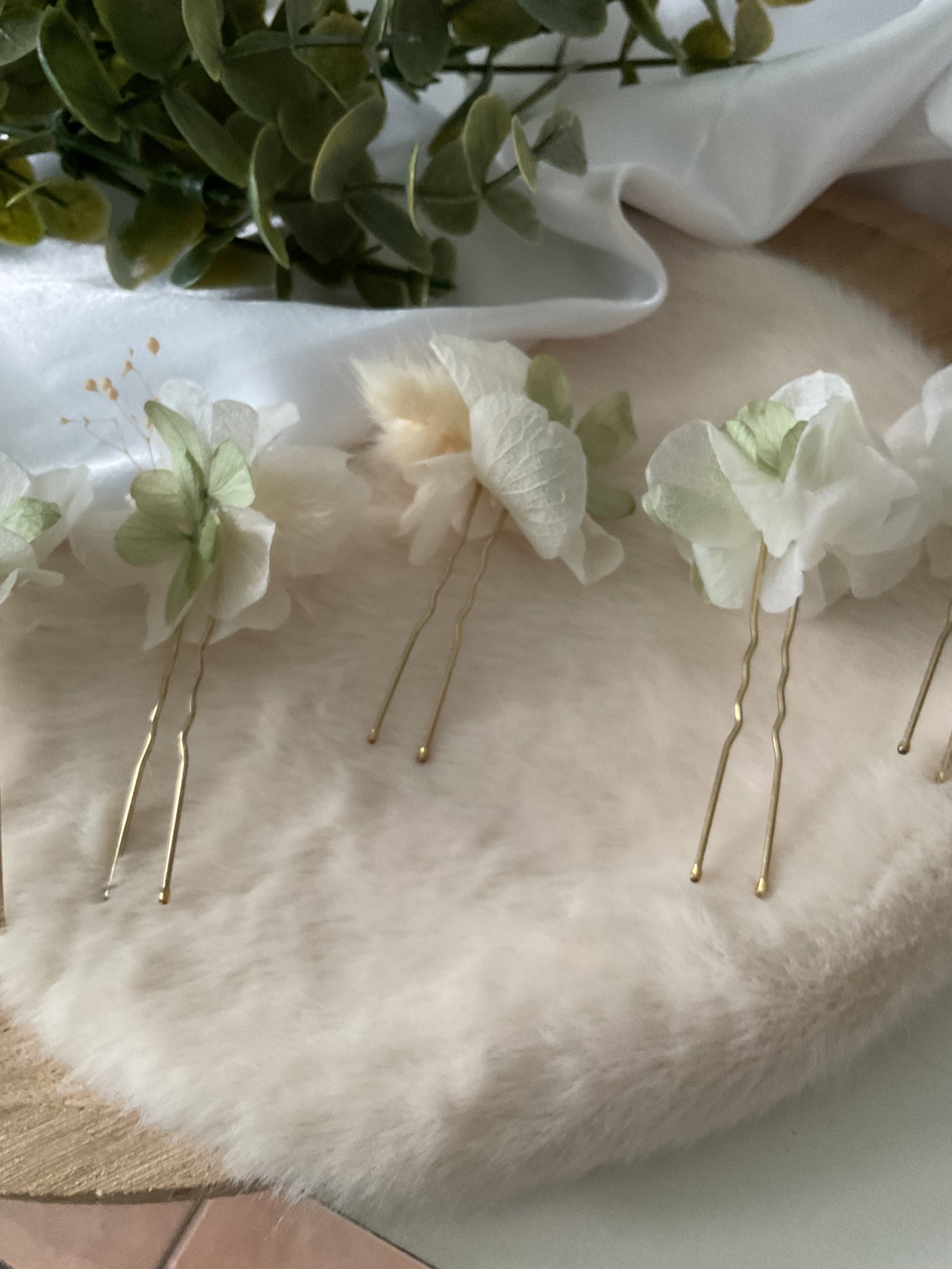 Ajoutez une touche romantique et poétique à votre coiffure avec notre pic à chignon en fleurs stabilisées. Confectionné à la main avec des fleurs naturelles préservées, il sublime vos cheveux avec délicatesse et élégance. Idéal pour les mariées, demoiselles d'honneur ou toute occasion spéciale.