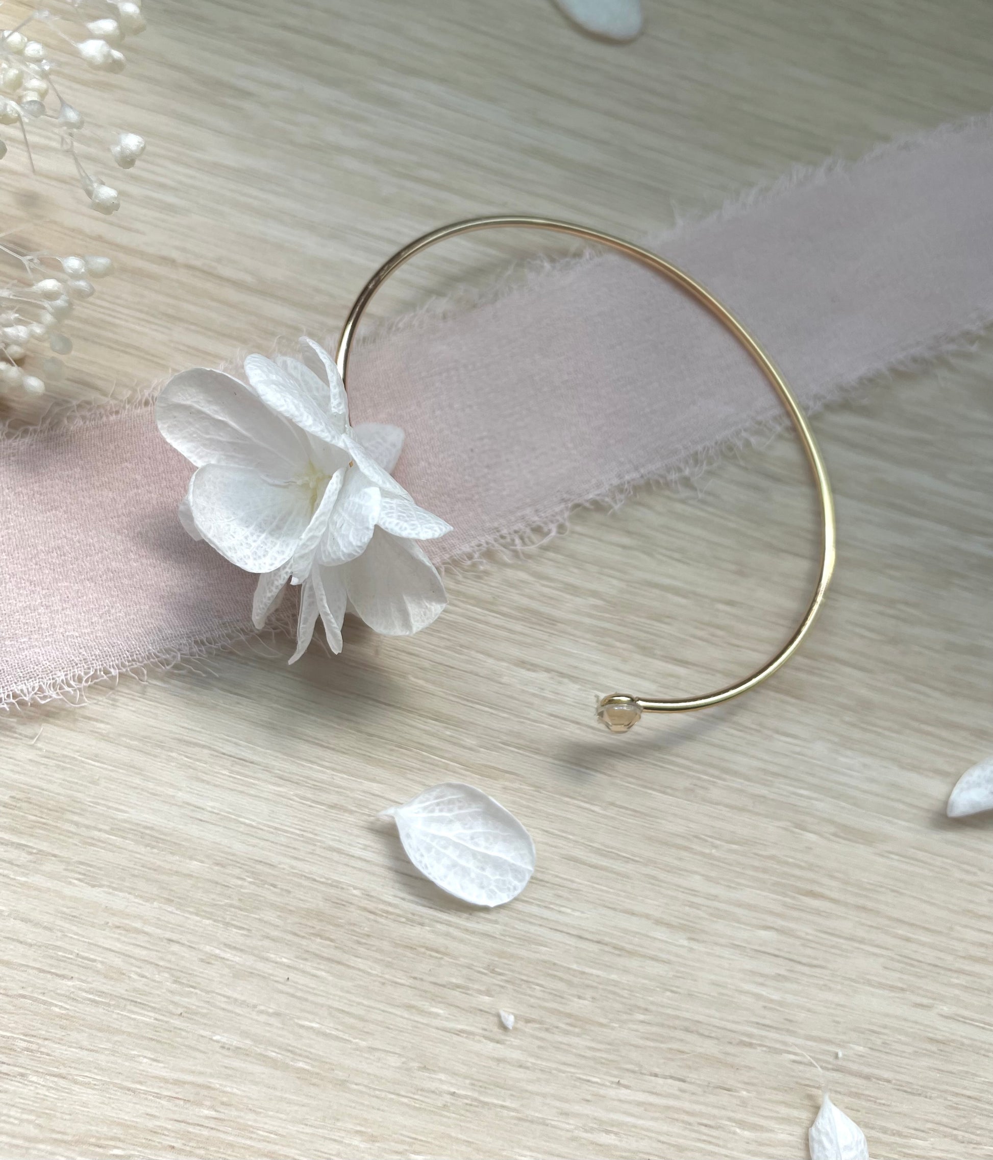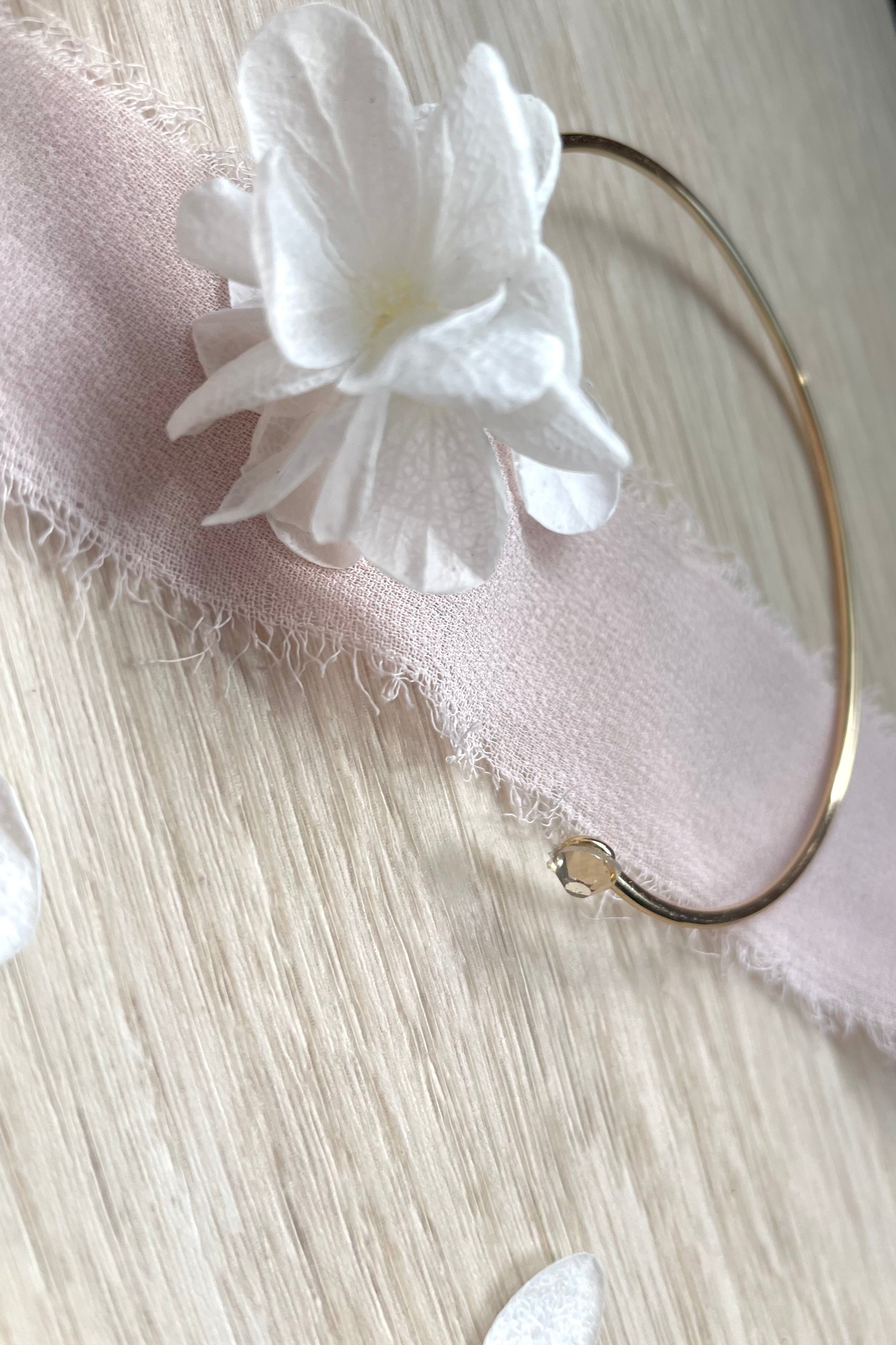 Le bracelet jonc Sirena séduit par sa finesse et son éclat discret. Composé d’un fil doré surmonté d’un petit strass, il se porte seul pour un look délicat ou en accumulation pour un effet tendance. C’est la touche lumineuse idéale pour sublimer une tenue sans en faire trop.