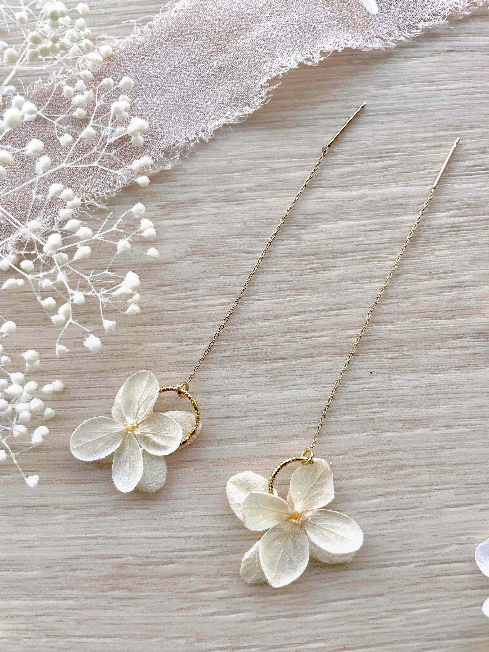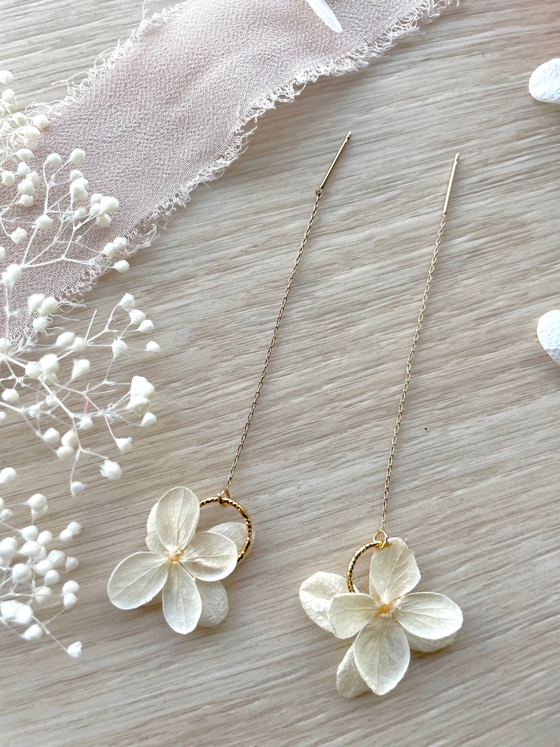 - Design : Boucles pendantes avec chaîne fine et fleur à quatre pétales